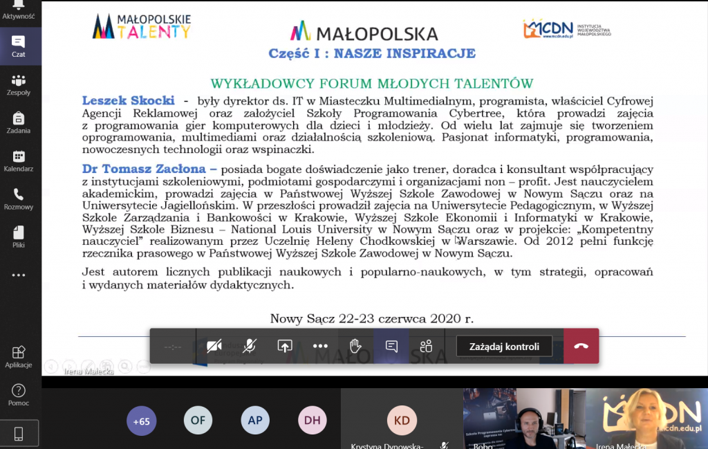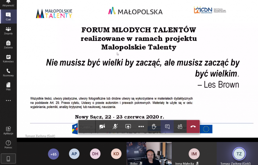 Zgodnie z planem, 22 i 23 czerwca 2020 r odbyło się Forum Młodych Talentów, stanowiące podsumowanie pracy Centrów Wsparcia Uczniów Zdolnych w roku szkolnym 2019/2020. Uczestnicy wysłuchali wykładów motywujących do rozwijania  pasji i talentów, poznali wyniki konkursu na projekt edukacyjny zrealizowany w  CWUZ  oraz obejrzeli wybrane prezentacje  efektów prac zespołów projektowych.