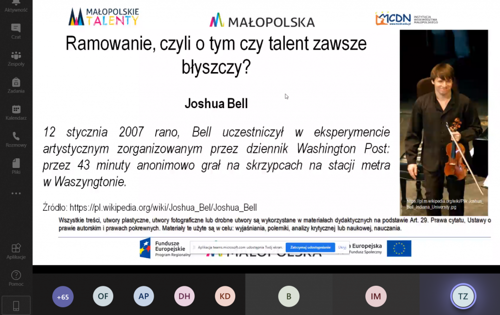 Oprócz około 200 uczniów i nauczycieli CWUZ w spotkaniu uczestniczyli: beneficjenci projektów konkursowych, nauczyciele CWUZ, kierownictwo i członkowie zespołów projektowych ze strony Urzędu Marszałkowskiego Województwa Małopolskiego oraz Małopolskiego Centrum Doskonalenia Nauczycieli.